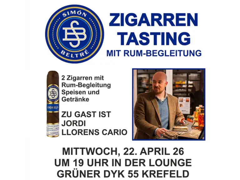 Erleben Sie ein unvergessliches Zigarren-Tasting am 22. April 2026 in Krefeld! Tauchen Sie ein in die Welt hochwertiger Zigarren, begleitet von erlesenen Rum-Sorten.