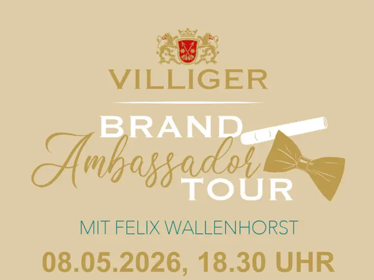 Villiger Brand Ambassador Tour am 08. Mai 2026 in Krefeld! Tauchen Sie ein in die Welt der Zigarren und genießen Sie ein exklusives Tasting.