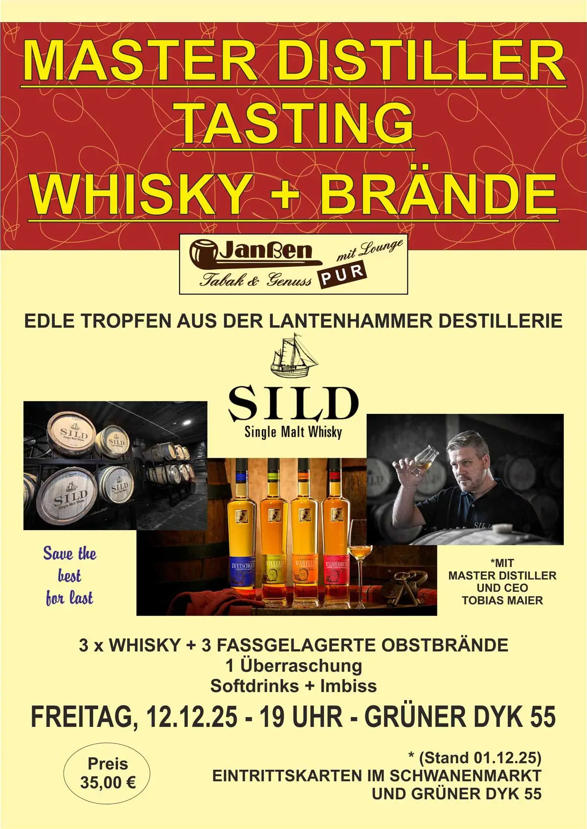 Feinste Spirituosen bei Janßen Tabak & Genuss in zwei Fachgeschäften in Krefeld – im Schwanenmarkt und am Grüner Dyk 55