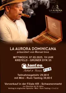 Erleben Sie die Faszination der Zigarrenkunst hautnah bei der exklusiven VegaFina Rollertour! Am Freitag, den 30. Mai 2025, haben Sie die einmalige Gelegenheit, live aus der renommierten Tabacalera de García in der Dominikanischen Republik zu erleben, wie der talentierte Torcedor Alexandro Yack Jose vor Ihren Augen exquisite Zigarren rollt.